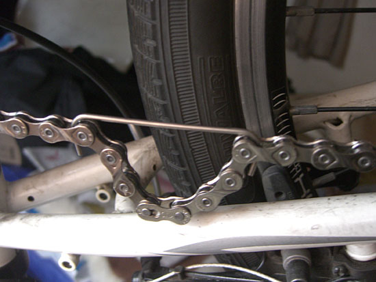 ついでに久々にスプロケットを分解して清掃する。クランクを空回ししてみると周期的にというか1回転ごとにコツコツと音がする。チェーン装着時は気がつかないほど小さな音だが…。とりあえず回転がゴリゴリするとかはないので問題ないのだろう…。チェーンを漬けておいた容器をシェイクして取り出し灯油を拭き取る。?…コネクトピンがないなと思ったら真っ黒になった灯油を入れた容器の底に沈んでいた。コネクタ部分は取り外し式なのを忘れていた。チェーンの取り回しに悩みつつ無事装着し注油して終了。タイヤも交換しようと思っていたがまた次回に…。