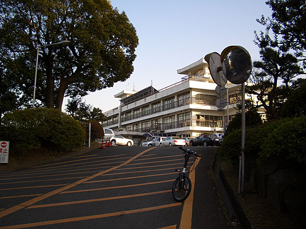 称名寺の入口で少し休憩し、いよいよゴルフ場への上り坂へとこぎだす。短いトンネルを抜けてテニスクラブを少し過ぎた辺りでますます坂が険しくなりこりゃたまらんというわけで押して歩くことにした。ぜいぜいいいながら上っていくとゴルフ場のクラブハウス前に到着した。