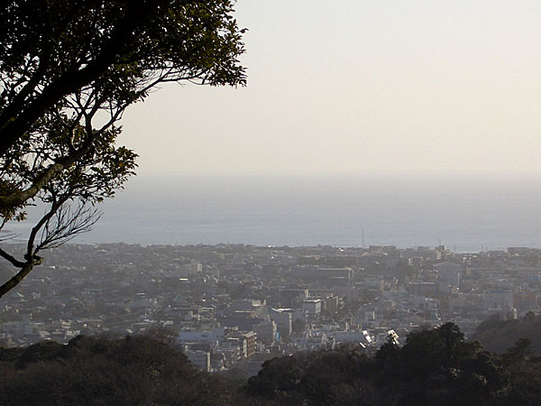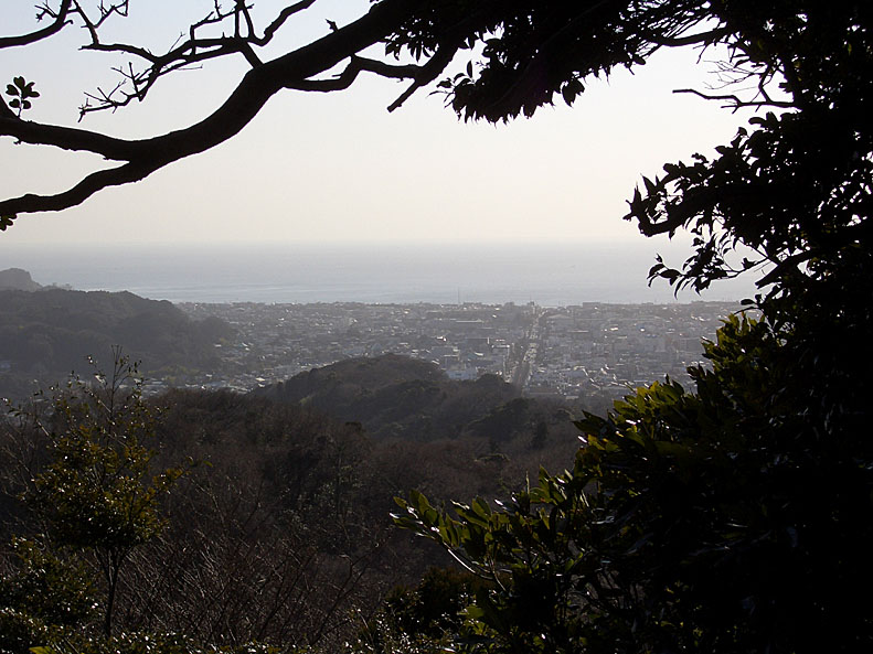 相模湾へと続く八幡宮の参道(若宮大路)が正面に見えるではないか。ここで先に来ていたハイカーの人と話になりこの参道の先に夕陽が沈めば(南なのでありえない)絶景だろうなどとたわいもない事を言いながらしばらく眺めたのちに更に先の勝上けんの展望台へと進む。