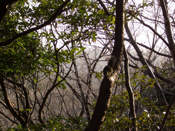 もときた道を引き返す途中でリスに遭遇した。前回きたときも氷取沢市民の森でみかけたが結構この辺りに棲息しているようである。