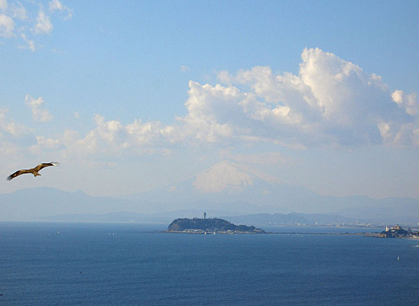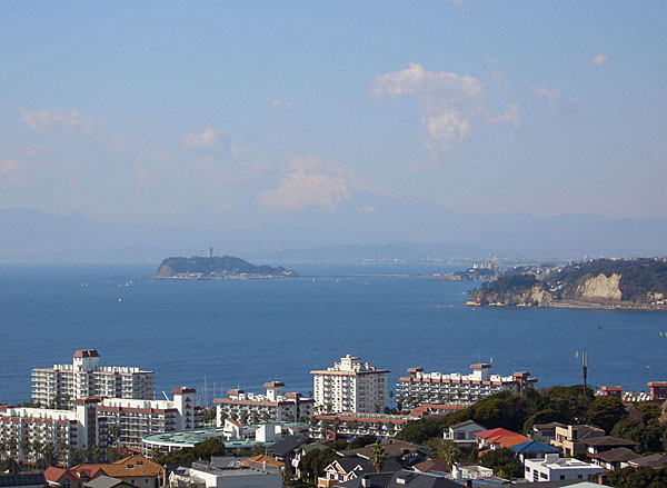 さあ眺望はどうだろうと展望台へと向かう。噂に違わずに下に逗子マリーナ、遠くに稲村ヶ崎、江の島の背後にいくぶん不鮮明ではあったが確かに見事な富士山を望むことができた。