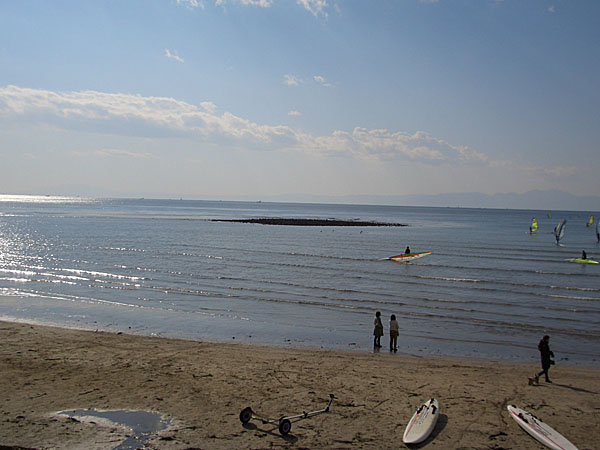 更に奥へ行くと葉山マリーナや三浦半島方面が見渡せた。穏やかな冬の午後の日差しに照らされた海面がきらきらと輝いていた。