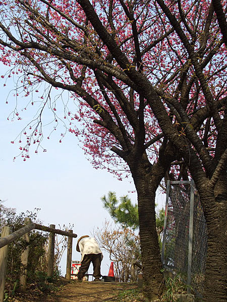 建物を後にして更に行くと何やら屋台の準備をしているらしく賑やかになってきた。あちこちに赤い幟が立っており“大倉山観梅会”と記してあった。