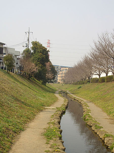 しばらく進むと舗装がとぎれてしまったので上にあがって川沿いに走行する。第三京浜入口付近で一般道と交差し横断すると再び河原に降りることができた。両脇に桜並木が続いていたがまだ時期が早い。月末頃には綺麗に咲いているのだろう。
