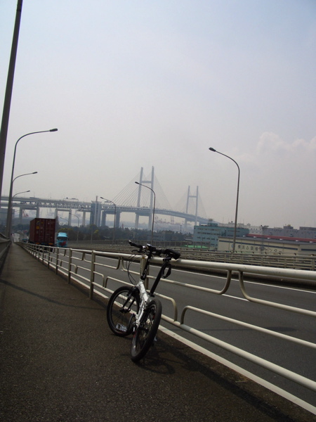くるくると漕ぎつづけて大黒大橋の上から見晴らしてみるがあいにく靄ってしまっていて今ひとつであった。