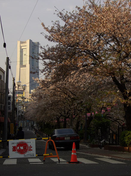 みなとみらい地区に到着し国際橋の脇から万葉の湯横に降りると何本か桜が植えられていた。
