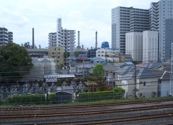 横浜市立大学の建物や東京ガスの環境エネルギー館、水再生センター、鶴見曹達。このあたりまでくると前方に鶴見つばさ橋の姿がようやく見えてきた。