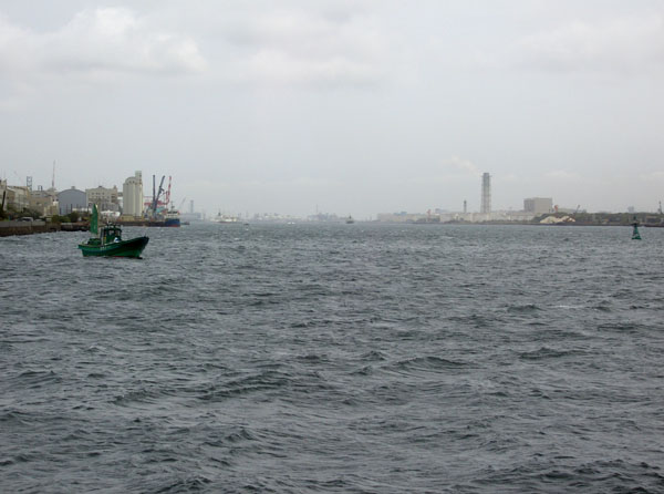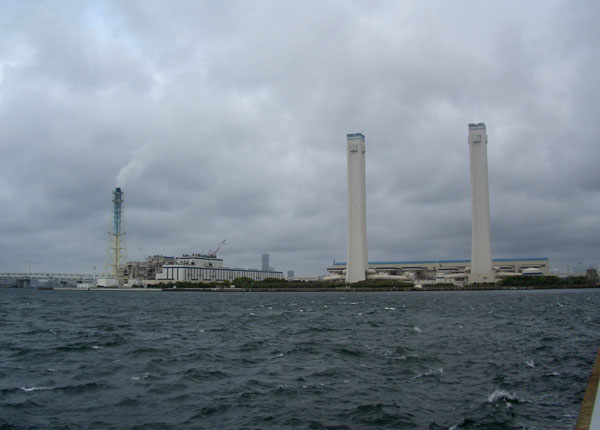 右手方向には火力発電所の煙突(トゥイニー)とベイブリッジ、正面には鶴見つばさ橋、左方向に扇島などが望めた。