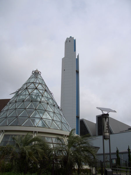 ちょうど清掃工場とふれーゆの前面部分に細長くプロムナード(末広水際線プロムナード)が続いていた。もの凄い風のためぐるぐると風力計が回転していた。人影は天候もあまりよくないしまだ午前中のためか釣りをしている人が二人に犬の散歩をしている人が三人ほどいただけであった。ちなみに開園時間は午前9時から午後5時までとなっており夜景を見ることはできないようである。トイレや水場もないとのこと…。