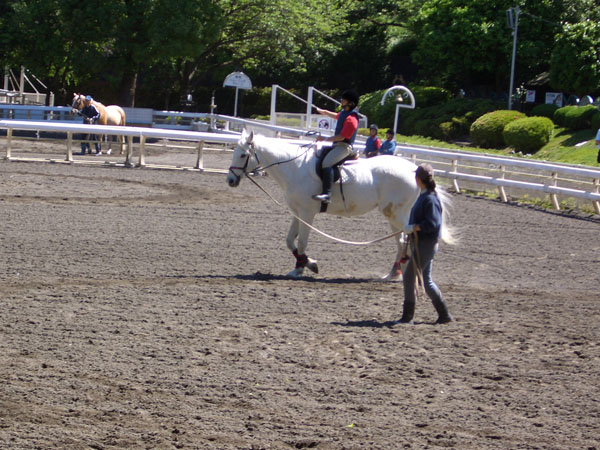 根岸森林公園では以前きたピンク色の桜の山から新緑へと姿を変えていた。しばらく散策後に(公園内は自転車乗り入れ禁止とのこと)馬の博物館方面に向かうと乗馬の練習が行われていたので少し見学をする。