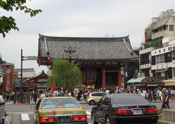 浅草駅前を左折すると有名な雷門が視界に入ってきた。予想に違わず凄い人混み。傍らには人力車の発着場があった。なんとか記念写真をとろうとしたが外国人の団体が到着したのでさらに収拾がつかなくなったので退散することにした。
