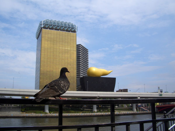 まずは吾妻橋横から隅田公園に侵入。対岸にはアサヒビールの有名なうんこのようなオブジェのあるビルが望めた。