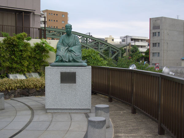 階段を上るとこぢんまりとしたスペースに松尾芭蕉の銅像が鎮座していた。