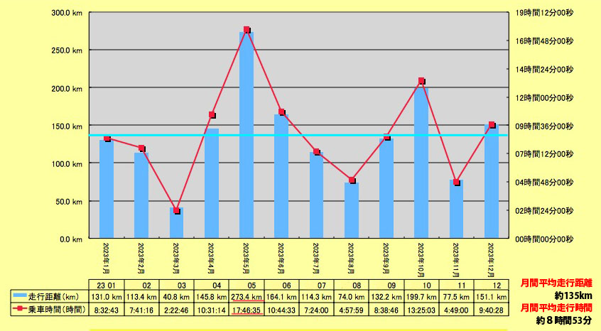 総走行距離=約1,617km(前年比110km↓)1,727km