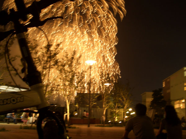 ボン、ボンとと花火の打ち上げの音が鳴り響いていたので初日の出を見たポイントからならば混んでなくて良く見えるのではないかとちょっとのぞいてみることにした。
