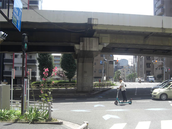 国道15号ルート-六郷橋-首都高速鈴ヶ森料金所先左折し右折-南大井図書館-桜新道・沢田通り-沢田(環七横断し左手の路地へ)-五之木橋-椿神社前-梅屋敷公園横(R15横断)-清水橋(呑川渡る)-日の出通り交番前(環八横断)-七辻(左手先の道へ左折)-多摩川左岸沿い-六郷橋-国道15号ルートほか