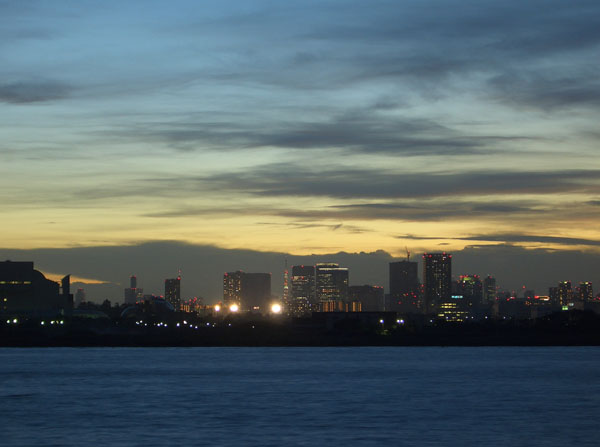 千葉みなと駅前を通過しR14号線を走行する。花見川付近で一部渋滞している横をR357号線の車道をえっちらおっちら走行していると自転車通行禁止の標識が現れたので歩道に退避する。舞浜、葛西臨海公園で休憩、夕陽を眺めたあと中川(荒川)沿いを走行して清砂大橋を渡り荒川右岸を走行するがかなり暗くなったので路面状況が今ひとつわからないのでのんびりと堀切橋までいき新大橋通りで築地あたりから海岸通り、右折して南浜橋を渡り旧海岸通り、八潮橋、旧東海道、鈴ヶ森、R15、六郷橋、鶴見橋と途中3度ほど休憩しようやく無事帰宅する。