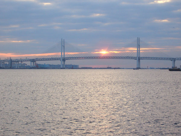 臨港パークに着くとちょっと雲がかかっていて綺麗な日の出は期待できそうもないが今回は数名のカメラマンがベイブリッジ方面に向けてカメラを構えていた。