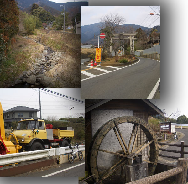 反対側に少し下ったところに護摩屋敷の湧水があることを思い出したので向かうことにした。途中の山肌には結構な量の雪が積もっていたが路面上はところどころちょっと湿っている程度で走行に支障はないようであった。