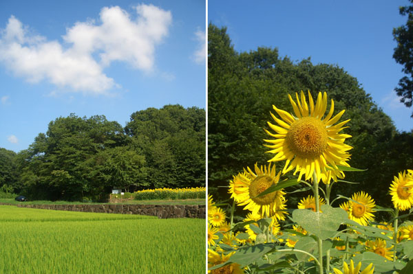 水車小屋の横には小規模ながらひまわりがちょうど見頃といった感じで咲いていた。