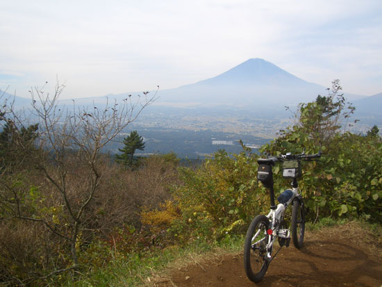 あまりきくつない適度な傾斜の交通量の少なめな道をのぼっていくとときどき富士山がのぞめたりとなかなか気持ちの良い道だ。