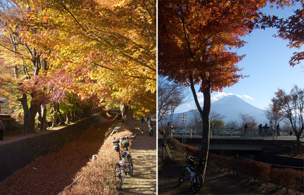 さらに先へ急ぎ紅葉トンネルらしき所に着いたので写真を数枚撮ってみる。富士山と赤い紅葉が絵になるところだ。もっとゆっくりしていきたかったが午後三時近いのでのんびりしていると日が暮れてしまう。