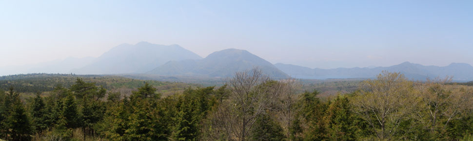休憩後さらにアップダウンをこなして展望の良い駐車場に到着。本栖湖や遠く南アルプスの山並みが霞んでみえていた。先ほどのぼりで追い越されたロードバイクの人と話をする。町田から道志みち経由できたとのこと…。