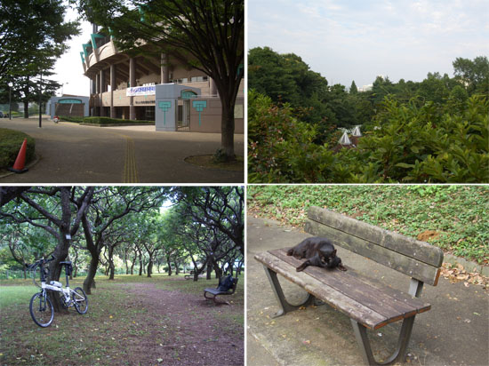 野球場では高校野球の予選大会が行われているようだった。花見台という指示板があったのでそちらに向かう。ここから遊歩道に下ってテニスコートや梅林脇をぬけて広場にでる。もうちょっと探索してみたかったが今日はほどほどにして帰ることにした。