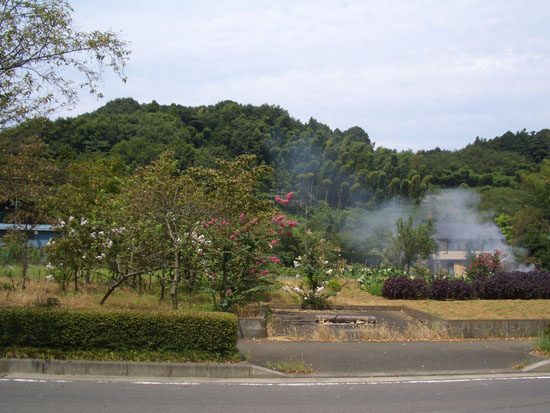 R16号線にでて川井本町を左折水道管橋の手前を右折する。草刈りしているおばさんに時刻をたずねられたので12時20分ですと答える。急な坂をのぼり少し下ると厳重な柵があって通行止めとなっていた。地図ではこの先へいくとズーラシア脇を抜けて中原街道に出られそうな感じだったのだが…。しかたなく引き返して梅田の信号あたりから急な脇道をのぼってみることにする。まむし注意という立て札がある。いかにもでそうだなと思う。尾根にでると先ほどの三保市民の森よりもワイルドな感じだ。みちなりにところどころ草むらをかきわけながらすすむ。しばらくすると開国博Y150関連のイベントが行われている会場の裏手にでた。