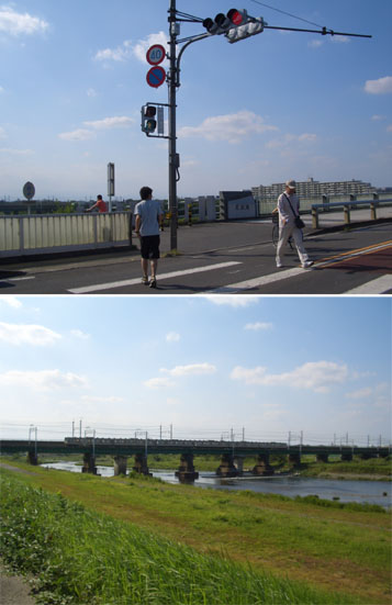 調子よくペダルを漕いで多摩水道橋手前の二ヶ領ふれあい館までノンストップで走行しちょっと休憩、顔を洗ったり水分補給する。多摩水道橋下を抜けてさらに上流へむけて左岸を走行していくと布田橋で舗装路が途切れたので信号を渡り多摩沿線道路にでる。