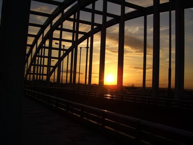多摩水道橋を渡り右岸へ、この辺りで夕暮れとなった。二子橋あたりで薄闇に、丸子橋に到着する頃には既に夜の闇に包まれていた。日没時刻がだいぶ早まってきたようだ。