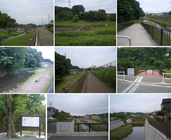 切り通しを抜けて鶴見川沿いに復帰するが鶴川手前あたりでは羽虫が多い…。この辺は車止めも出現するのでさらにのんびりペースで走行。ほどなく新袋橋に到着した(1540)。横断歩道を渡りさらに先へとすすむ。以前はこのちょっと先で行き止まりだったのだけれど新たに整備されたようだ。ということで道なりにいくと新鎧橋あたりには鎧堰跡などという案内板がある。ほどなく鶴見橋で行き止まりとなった。