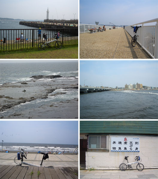 江の島に上陸してみることにした。白灯台のあたりまでいってみる。日陰は少ないけど吹く風が気持ち良い。昼近くなってきたので気温もどんどん上昇しているようだ。片瀬西浜をちょろっと走行して帰ることにする。
