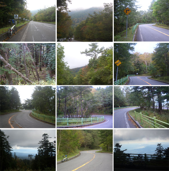 とりあえず怪我なく無事に帰ってこれたのでよかった。前輪のリムテープを交換しておかなかったのはまずかった。小径車は特に峠の長い下りでブレーキングを多用した場合リムが過熱しやすくリムテープやチューブなども劣化してパンクなどするリスクが高いのかもしれない。今回は下界の天気は良かったみたいだけどちょうど表富士側に雲がかかってしまってちょっと残念だった。富士山スカイラインは米軍のキャンプ富士を過ぎてから太郎坊洞門あたりまでの区間が一番きつく感じたかな。料金所以降は序盤と最後はきつかったけど中盤以降のつづら折れ区間はリズムよくのぼっていける感じ。明神・三国峠のような激坂区間がないので押すことなくなんとかのぼれた。休憩は多かったが…。路面はスバルラインに比べて悪い区間が多いような感じだ。残るはあざみラインだけどここは押しが入るだろうな。下るのも怖そうだし…。それにしても今回の平均速度が低いな…走行距離も10.87kmとおかしな数値だったし(積算距離はあっていたが…)どこかでリセットしてしまったのかも…。