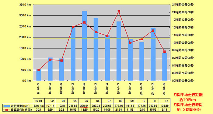 総走行時間=約153時間21分 (前年比40時間↓)193時間11分