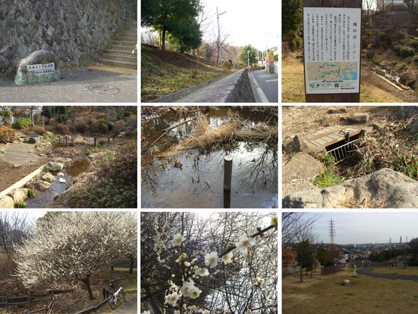 ということである。ちょうど源流の脇の梅の木が満開。公園内のスロープをのぼっていく。新横浜のプリンスホテルの頭が丘ごしに見えている。