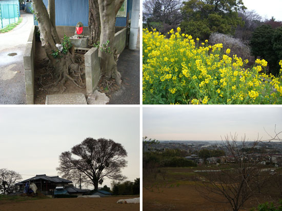 通りを横断して直進してみるが途中で行き止まり…。迷走して急坂をいったりきたりしていると緑・保土ヶ谷の区界道に復帰。竹山橋を渡り竹山南公園横を通過する。右折してみちなり進むと林の奥から鶯の鳴き声が聞こえた。大通りにでる手前で竹林の脇道へ曲がるとごはん塚。このあたりは北側の見晴らしが良い。散歩している人と何人かすれ違う。