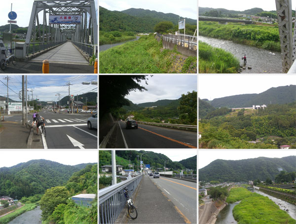 左折して陸橋を下りやや迷いつつ中津川右岸沿いの道にでてみる。この区間は未舗装だったり舗装してあったりといったかんじだった…のんびりと走行するにはよいかな。ほどなく才戸橋に到着。ここから川沿いを離れて側道へでる。交通量は多いけど気持ちよく走って八菅橋に到着(0727)。