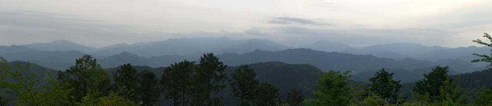 道標に従って高尾山頂方面にすすむ。細い道を進み崖状のところを足下に注意しながらのぼる。ほどなく稲荷山コースに合流した(1542)。ゲートからここまでくるあいだにカメラを担いだ人と遭遇しただけだったがさすがメジャーな山ということでここからは老若男女大勢の人が通行していた。林道よりも急傾斜でちょっと辛い。ほどなく山頂下の階段に到着(1551)。ちょっと一息ついてから階段をのぼりはじめる。何段あるのか結構長い…。ようやく山頂らしきところにでた(1558)。高尾山大見晴園地、関東の富士見百景という案内板がある。丹沢・道志方面の山並みが見えていた。空気が澄んでいて雲がなければと富士山も見えるらしい。