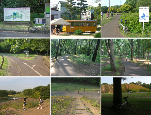 小金井橋交差点に到着(1617)。どうやらこの奥が公園になっているらしい。西門から園内に入って案内板をみる。江戸東京たてもの園入口前にでる。江戸時代から昭和初期までの、29棟の復元建造物が建ち並んでいるとのこと。この公園もかなり広くサイクリングコースがあったのでちょろっと走行してみる。代々木公園のコースに似ている。小学生が自転車の練習をするにはよさそうなコースだ。つつじの山というのにのぼってみるがそれほどの眺望はなかった。のんびりしていると日が暮れてしまうのでほどほどにして玉川上水沿いに井の頭公園に向かうことにする。
