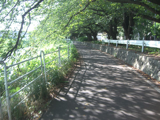 トンネルを抜け気持ち良く下って(多少のぼりもあるが…)新道大橋に到着(0719)。ここまで途中寄り道しなければ1時間ちょっとかな(約20km)。境川沿いを下流に向けてやや早めのペースで走行していく。