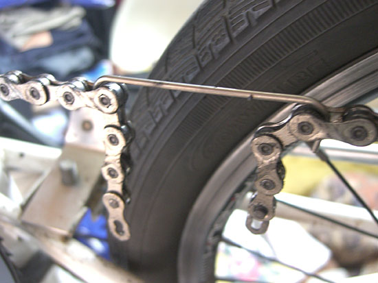ついでに久々にスプロケットを分解して清掃する。クランクを空回ししてみると周期的にというか1回転ごとにコツコツと音がする。チェーン装着時は気がつかないほど小さな音だが…。とりあえず回転がゴリゴリするとかはないので問題ないのだろう…。チェーンを漬けておいた容器をシェイクして取り出し灯油を拭き取る。?…コネクトピンがないなと思ったら真っ黒になった灯油を入れた容器の底に沈んでいた。コネクタ部分は取り外し式なのを忘れていた。チェーンの取り回しに悩みつつ無事装着し注油して終了。タイヤも交換しようと思っていたがまた次回に…。