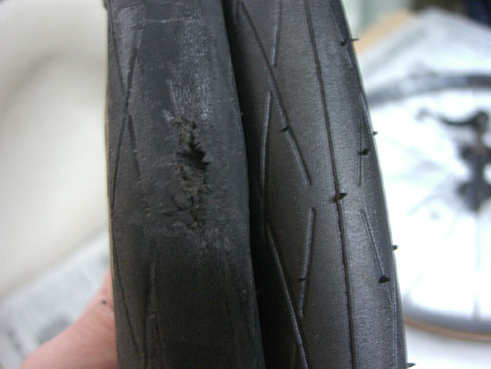 バーストしてしまったフロントタイヤ、何キロ使用していたのか調べてみると何度か前後ローテーションして2009.3.21に10,124kmで交換していた。現在22,122kmということで約5年で約11,998km走行してバーストとなったようだ。年間数千キロしか走らないので5年も使ったがさすがに酷使しすぎたかな…。ちなみにリアタイヤ(シュワルベ・ビッグアップル)は元から装着されていたものを未だに使用中だ…。一度引退して2011.6.25から再使用し現在約15,881km使用しているようだ…。さすがにこちらもそろそろ危なそうなので近いうちに交換したいと思う。交換用のタイヤは現在のフロントタイヤと同じシュワルベ ・デュラノが2本ストックしてあったのでとりあえずフロントタイヤを交換しさらにチューブ2本をパッチ修理しておく。後輪も交換したかったがパンク時の予備チューブがなくなるので今回はそのままにしておいた。約12,000kmも持ったというのは凄いな。普通はバーストしてしまう前に交換するのだろうけど…。もう一本は約2年半で約6,000kmほど使用してサイド側が膨らんで変形し廃棄してしまっているが…。使用状況などにもよるんだろうけどこのタイヤ、前輪で使用する場合は10,000km、後輪で使用する場合は5,000km程度の耐久性かな。とりあえず5,000kmほど走ったら予備タイヤを用意しておくのがよさそうだ。