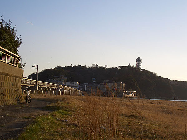 腰越橋を渡り腰越海岸を通過し、片瀬東浜で小休止する。ここで小休止したあと江の島に向かい橋の下をくぐって遊覧船の弁天丸が航行する様子をしばし眺める。時計をみると午後4時すぎとなっており、日もだいぶ傾いてきていて風も冷たくなってきたので帰路につくことにした。