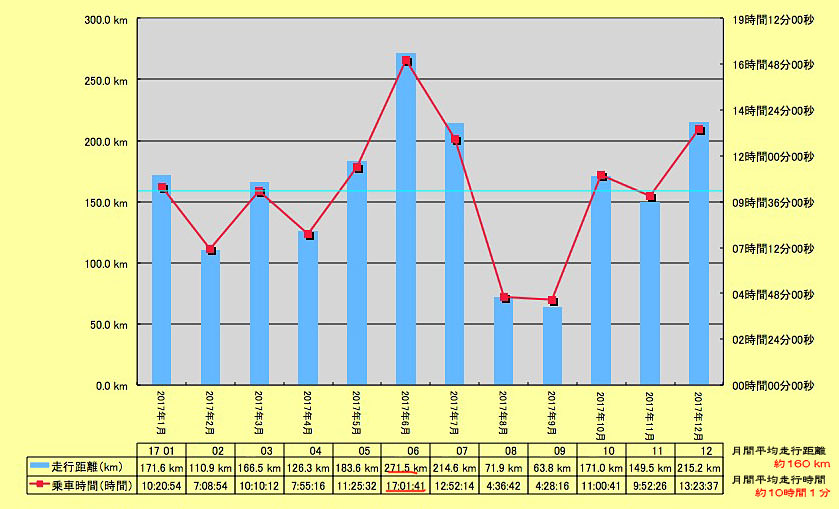 最高平均速度:18.0km/h(走行距離30km以上の日)