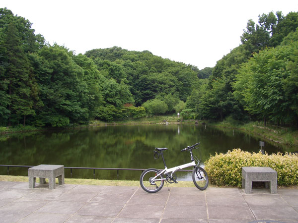 さらにささぶねの道を走行して都筑中央公園の坂を登りステージ広場で休憩後に反対側の宮谷戸大池へと下ってみる。