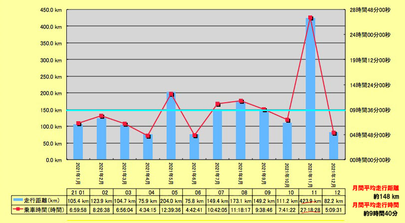 最高平均速度:16.6km/h(走行距離30km以上の日)